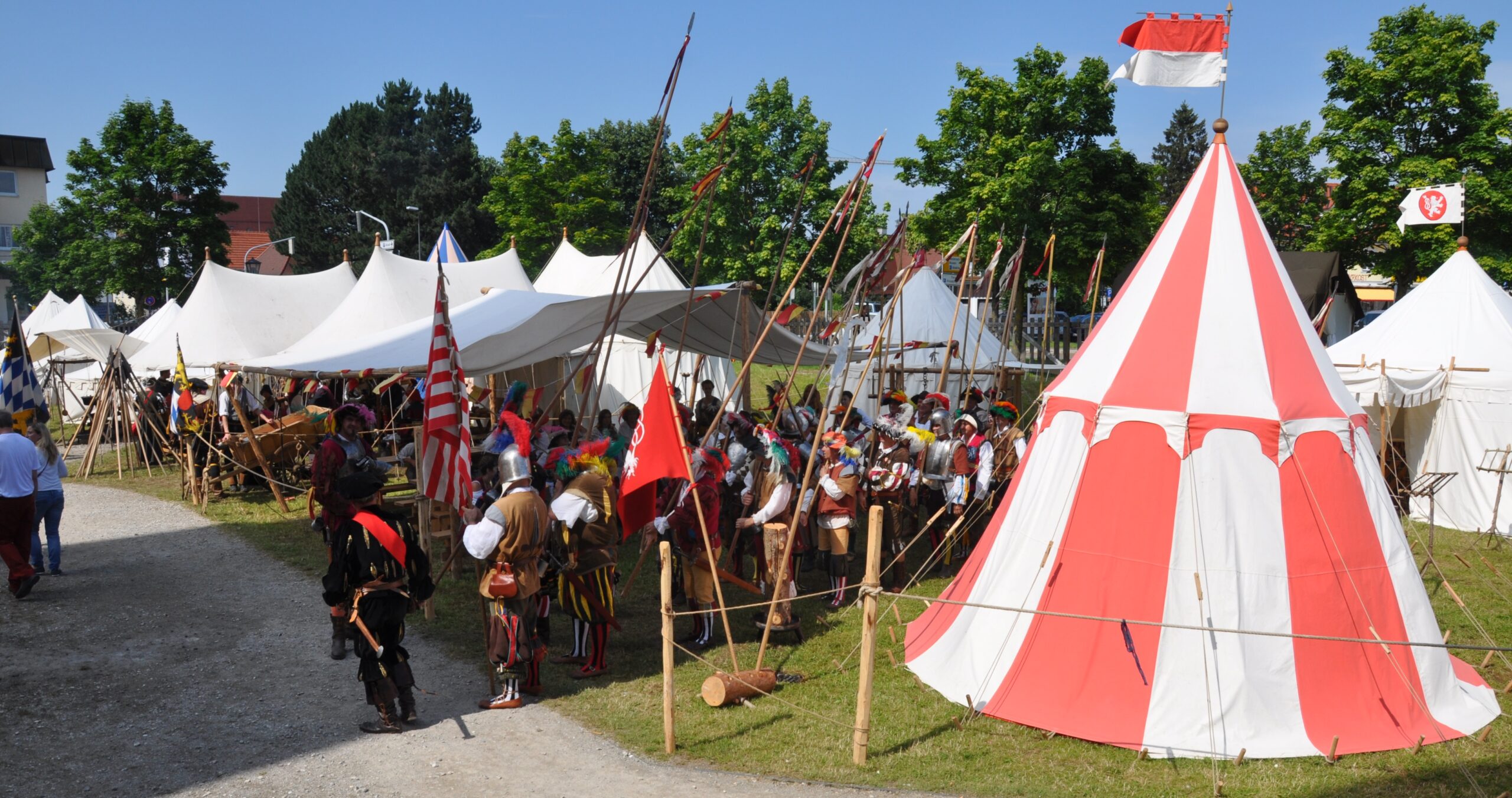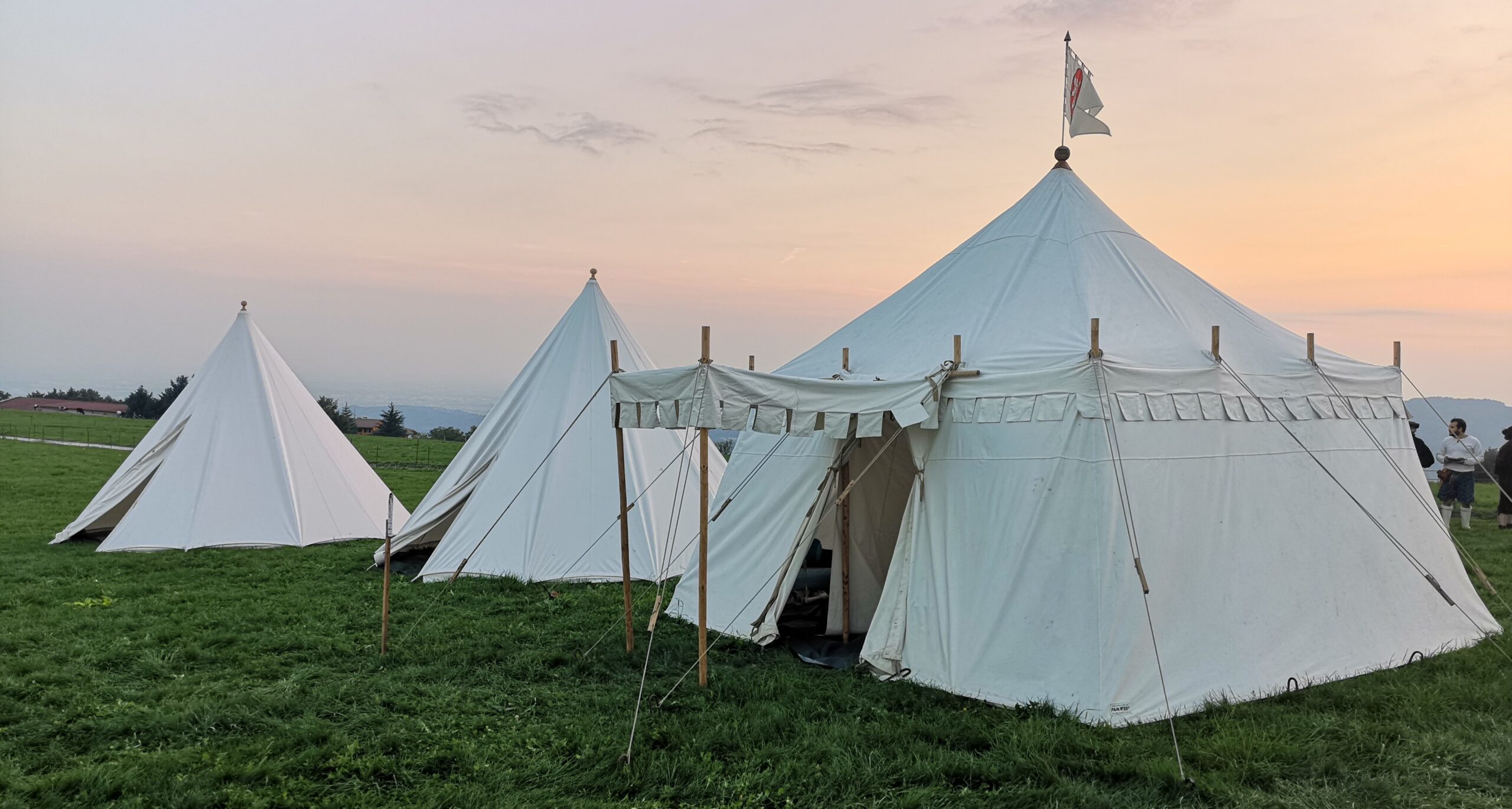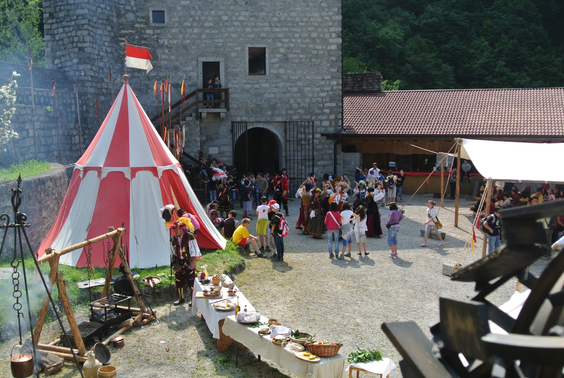 tre grandi tende e un velario con panche e tavoli in legno massiccio completato da una grande varietà di accessori quali le cucine da campo, i portapicche ricavati dalle ruote dei carri, bracieri in ferro battuto, carri e carretti per le sfilate.